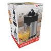 100 W teljesítményű citrusprés rozsdamentes acél külsővel • Műanyag kiöntő, cseppenésgátló funkcióval • Túlmelegedés elleni védelem