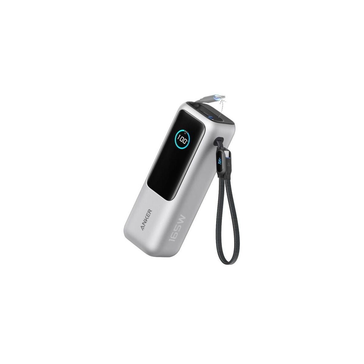 Anker Power Bank (25K, 165W, Built-In USB-C and Retractable Cable) Silver