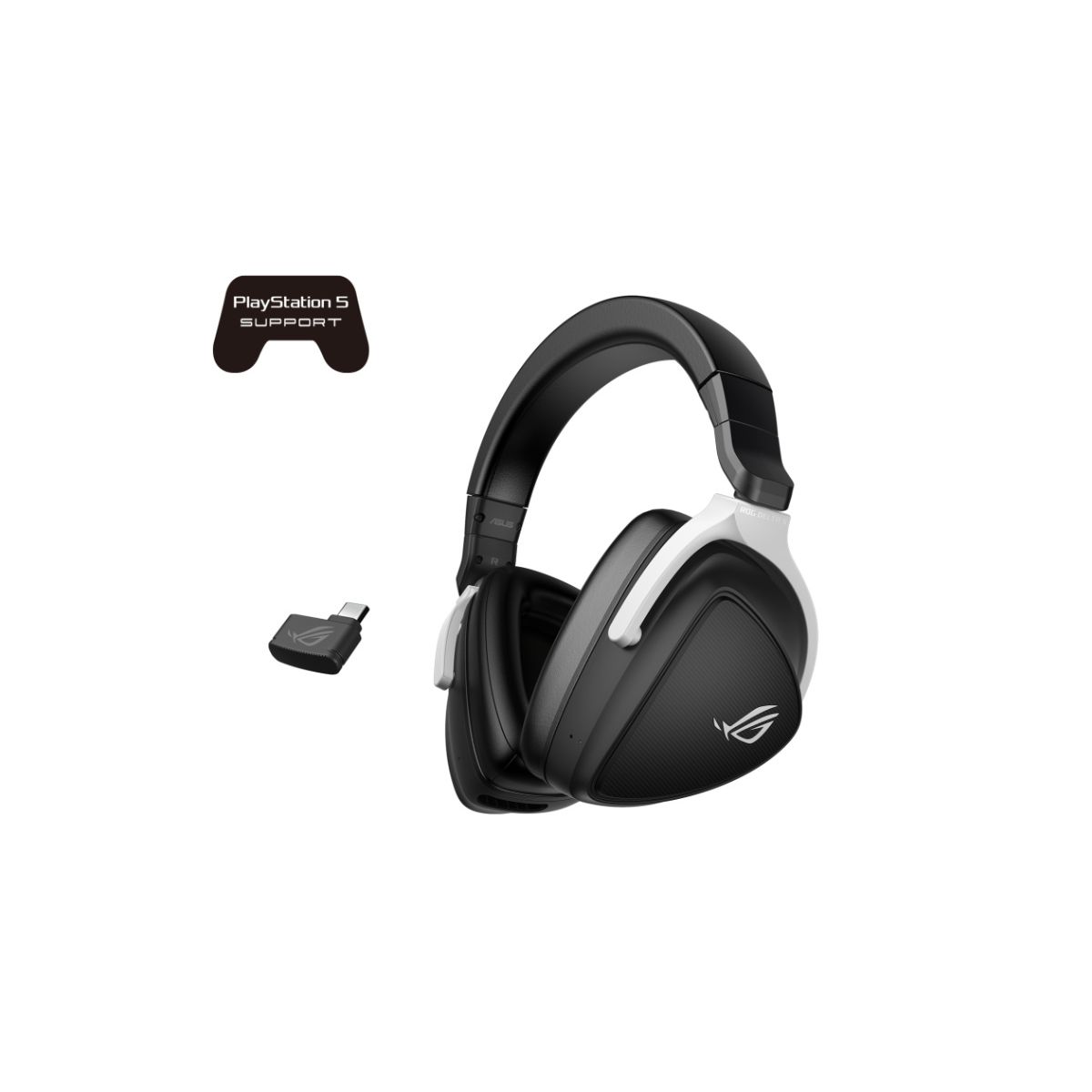 ASUS ROG Delta S Wireless headset • Kivitel: fejhallgató (on-ear) • Vezeték nélküli • Csatlakozás: USB 2.5Ghz + Bluetooth • Hangzás: Virtual 7.1 • Membrán átmérő: 50mm • Impedancia: 32 Ohm • Frekvencia válasz: 20 - 20000Hz • Mikrofon: kétirányú, -37 dB érzékenyésg, 100 - 10000Hz frekvencia válasz, AI zajszűrés • Vezérlés: Hangerőszbályzó görgő, Mikrofon némító, Többfunkciós gomb, 2.4/BT/Off kapcsoló • Kábel: 1m-es USB-C töltő kábel • Akkumulátor: 1800 mAh (akár 25 óra üzemidő) • Extra fülpárna• Garancia: 24 hónap
