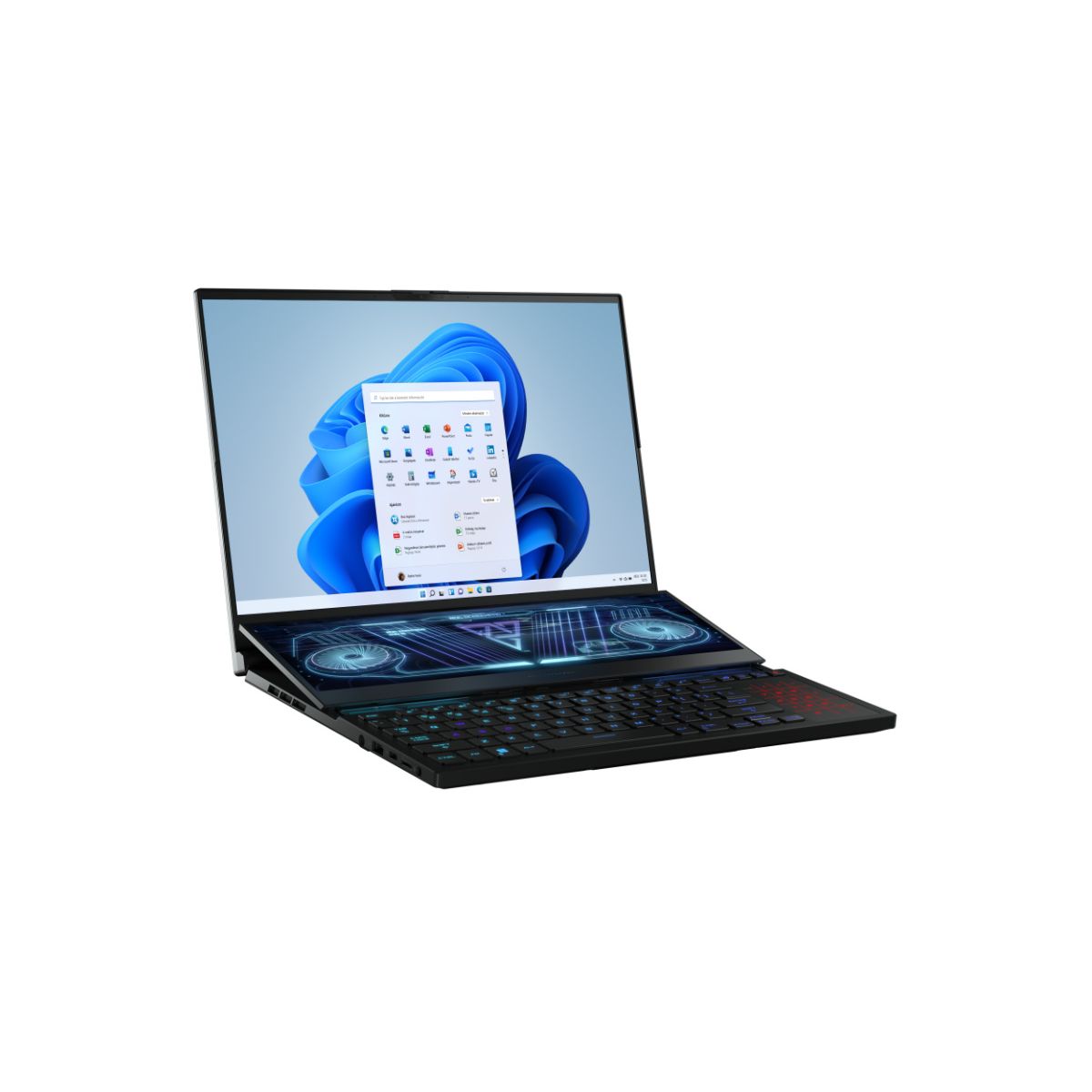 AMD Ryzen™ 9 7945HX (64MB Cache, Up to 5.4GHz) • Microsoft Windows 11 Home • 64GB DDR5 4800MHz RAM • 2TB M.2 PCIe SSD • 16" WQXGA (2560 x 1600) matt LCD (240Hz, Pantone Validated, ROG Nebula HDR Display) + ScreenPad™ Plus (14" 3840 x 1100(4K) IPS-level Panel Support Stylus) kijelző • NVIDIA® GeForce™ RTX 4090 16GB GDDR6 grafikus vezérlő • 2500Mbps RJ45 (1 db) • Wi-Fi 802.11 ax • Bluetooth 5.2 • HDMI (1db) • USB 3.1 (2db) • USB-C 3.1 (2db) • microSD-kártyaolvasó • 720P HD IR Webkamera, Windows Hello támogatás • Garancia: 36 hónap