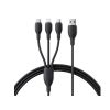 BASEUS 3in1 adatkábel • csatlakozók: Type-C - Type-C / Lightning / microUSB • teljesítmény: 3.5A • funkció: gyorstöltő • hossz: 130cm • alternatív termék: USB-A - Lightning / microUSB / USB-C töltőkábel• Garancia: 12 hónap