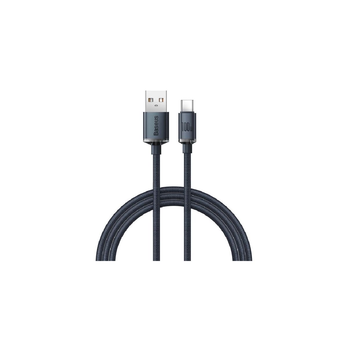BASEUS CRYSTAL SHINE adatkábel (USB - Type-C, 100W, PD gyorstöltő, 200cm, cipőfűző) FEKETE