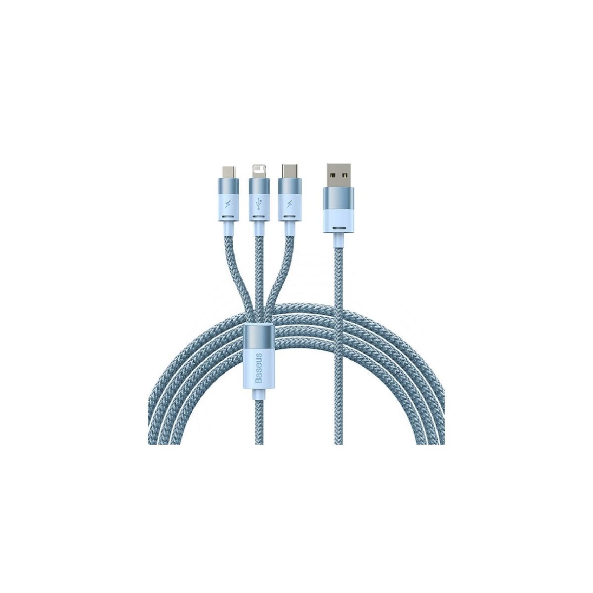 BASEUS töltőkábel 3in1 (USB - lightning/microUSB/Type-C, 17W gyorstöltő, 120cm, cipőfűző) VILÁGOSKÉK