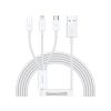 BASEUS töltőkábel 3in1 (USB - lightning/microUSB/Type-C, gyorstöltő, 150cm) FEHÉR
