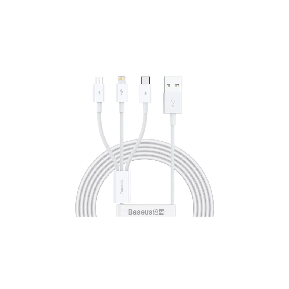 Baseus töltőkábel 3in1 (USB - lightning/microUSB/Type-C, gyorstöltő, 150cm) FEHÉR (CAMLTYS-02) • 3 az 1-ben kialakítás (USB, Lightning, MicroUSB, Type-C) • Hossz: 150 cm • Gyorstöltés támogatása • Kompatibilis a legtöbb mobilkészülékkel • Minőségi anyaghasználat a tartósság érdekében• Garancia: 12 hónap