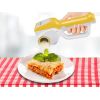 Metaltex univerzális reszelő és szeletelő • 7 különböző reszelő és szeletelő mód: zöldségekhez, gyümölcsökhöz, sajtokhoz, csokoládékhoz • Biztonságos használatért ujjvédő toló résszel