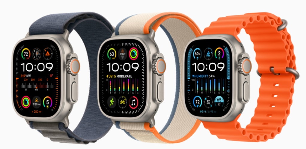 Az Apple Watch ULTRA 2 okosóra csak eSIM verzióban, tehát GPS + Cellular változatban érhető el. Csak 49 mm-es titán tokméret variációban létezik, szóval leginkább férfi kezekre lett kitalálva. A mindig bekapcsolt Retina OLED érintőkijelző gyönyörű képet és láthatóságot biztosít akár sötétben, akár verő napfényben pillantunk rá. IP6X-nek köszönhetően porálló, valamint vízállóságának hála 100 méteres mélységig bírja. Titán tokjának köszönhetően iszonyatosan strapabíró. Véroxigén- és EKG mérés mellett testhőmérsékletet is mér, a túl alacsony vagy túl magas pulzusszám esetén is figyelmeztet minket, illetve szól abban az esetben is, ha szabálytan a szívritmusunk. Van benne SOS funkció, továbbá esésérzékelés. A GPS+Cellular verziók eSIM képesek, képesek vagyunk vele telefonálni is ha a szolgáltatónk támogatja az iker SIM-et.