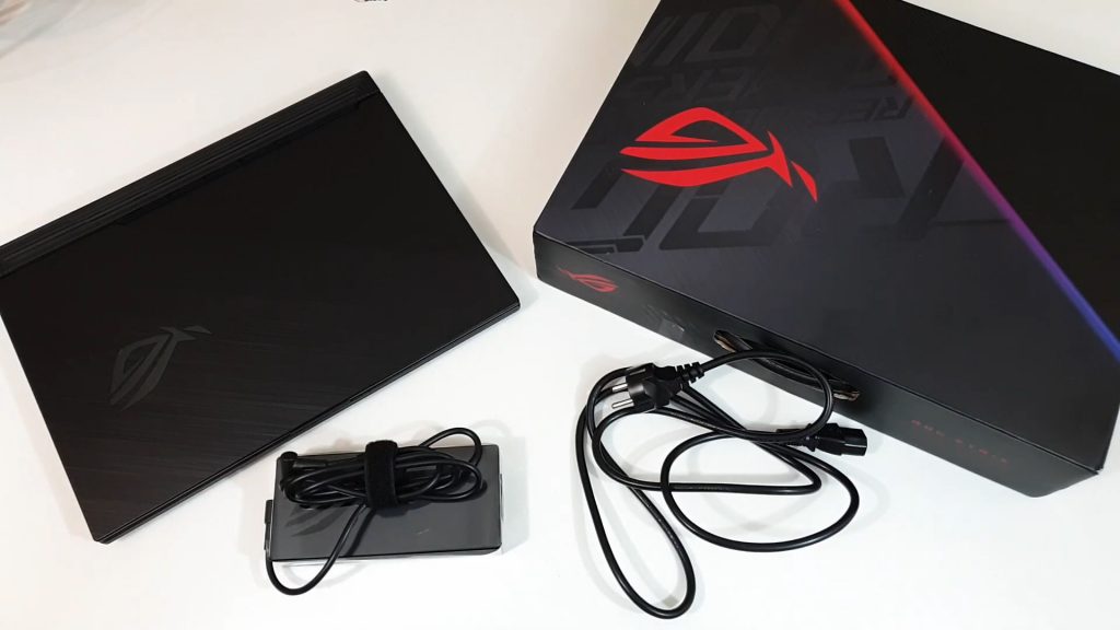 Ahogyan a legtöbb számítógépes játék esetében is fontos az előjáték/tutorial így mi is szeretnénk a gép csomagolásával kezdeni elemzésünket. A notebook elődeihez hasonlóan egy matt fekete dobozban érkezik megrendelőjéhez, amelyen a már megszokottnak mondható ASUS „beütések” láthatóak. Fénycsíkok a szivárvány minden árnyalatában illetve a gép neve, a mattból kiemelkedő fényes finissel. Tehát már a csomagolással megkapunk minden olyan design-elemet, amit egy gamer notebooktól várunk. A doboz felnyitását követően egyből megpillantjuk a gépet, amelyet kivéve egy három rekeszes tárolóban rejtették el a fejlesztők a 66 wattos töltőt illetve a gép leírását.