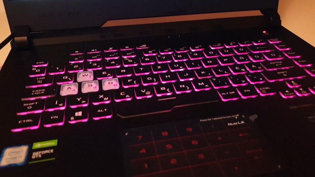 A notebookot a legtöbb gamer laptophoz hasonlóan felszerelték jó pár fényforrással is. Világító logó, több színben pompázó billentyűzet jellemzi a szerkezetet. Sőt még egy alsó led-csíkot is kapott a gép, aminek színe megegyezik az éppen a billentyűzeten is megtalálható árnyalattal. Abban már most biztosak vagyunk, hogy éjszaka igen meghatározó élmény lesz ezen a notebookon játszani, hiszen nemcsak a színek, a fény erőssége, de még az is állítható rajta, hogy mindez milyen ütemben változzon, pulzáljon. A ROG Strix G az eddigi ASUS gamer notebookokhoz hasonlóan is kapott egy olyan gombot, aminek megnyomásával könnyen el lehet érni azt a programot, ahol mindezt be lehet állítani, így nem kell hatalmas tudás és hosszú leírás a fények kezeléséhez sem.