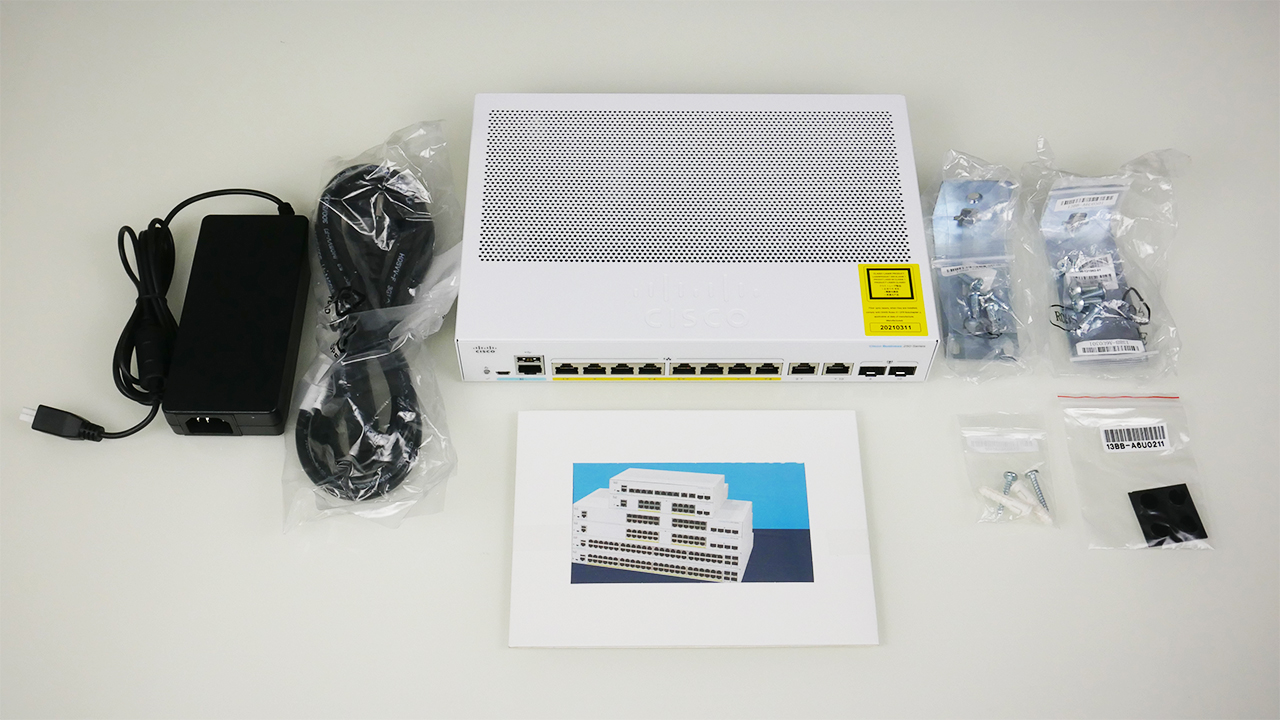 A Cisco CBS50-8P-E-2G egy 8 portos, akár rackbe is szerelhető gigabites Ethernet switch. A Cisco ezen szériája rugalmas felügyeleti lehetőségekkel, átfogó biztonsági képességekkel és Layer 3 statikus útválasztási szolgáltatásokkal rendelkezik. Ideális megoldás online erőforrások megosztásához, telefonok és vezeték nélküli hozzáférési pontok csatlakoztatására. A doboz tartalma a switch-en kívül a használati utasítások, valamint mellé csomagolták a tápot, tápkábelt, a rackbe szereléshez minden alkatrészt egészen a csavarokig és még gumitalpakat is kapunk.