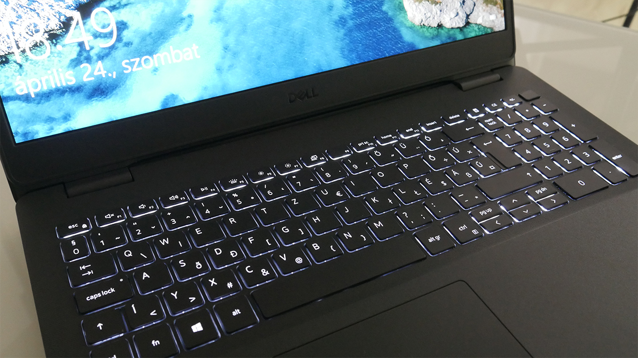 Teljes magyar billentyűzetet kapunk numerikusokkal együtt, míg a jobb felső bekapcsológomb egy szuper gyors ujjlenyomat olvasót is magában rejt.
