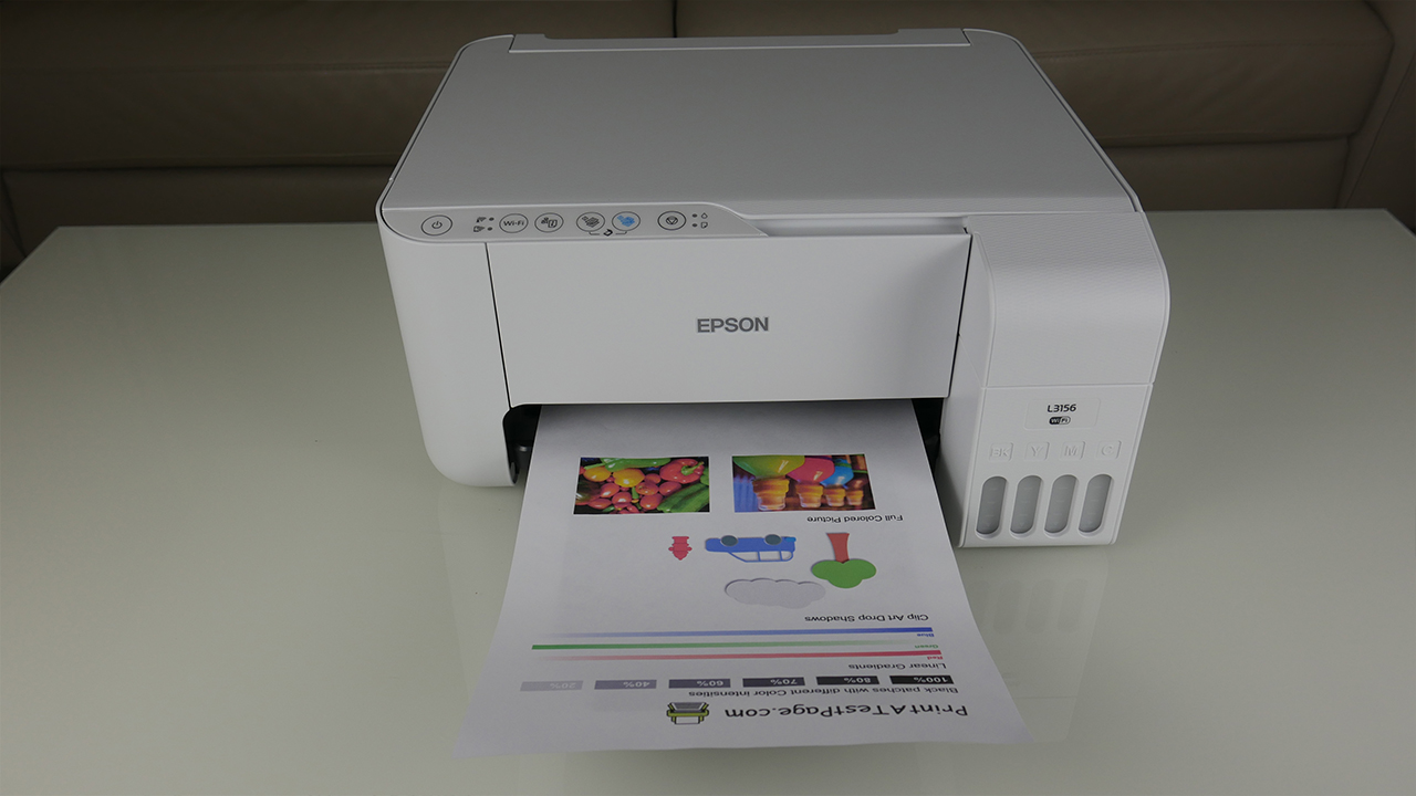 Hasonló kategóriába tartozik a következő nyomtató is, mégpedig az EPSON EcoTank L3156, mely az előzővel megegyező Micro Piezo nyomtatófejjel rendelkezik, és ugyanúgy 5.760×1.440 dpi nyomtatási felbontásra képes. Viszont multifunkciós, így a nyomtatáson felül szkennelni és másolni is tudunk vele, valamint rendelkezik WiFi-vel. A nyomtatási sebessége is 33 lap/perc monokróm, 15 lap/perc színesben normál papírra, valamint 69 másodperc a 10×15-ös fotópapírra. A szkennelés sebessége felbontása 1.200 x 2.400 dpi, amit BMP, JPEG, TIFF és PDF formátumban kérhetünk tőle. A papírtálcája is szintén 100 lapos, míg a kiadó tálca kapacitás 30 lapos. Ugyanaz a fajta tinta szükséges hozzá, mint az L1110-hez, ebből adódóan ugyanannyi papír nyomtatására is elegendő. Egy szó mint száz, a két nyomtató pontosan ugyanazt kínálja, azzal a különbséggel, hogy az L3156 szkennelésre, másolásra is befogható a nyomtatáson felül. Otthoni használatra kiváló, esetleg kis igénybevételű irodába.
