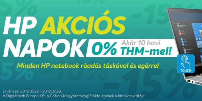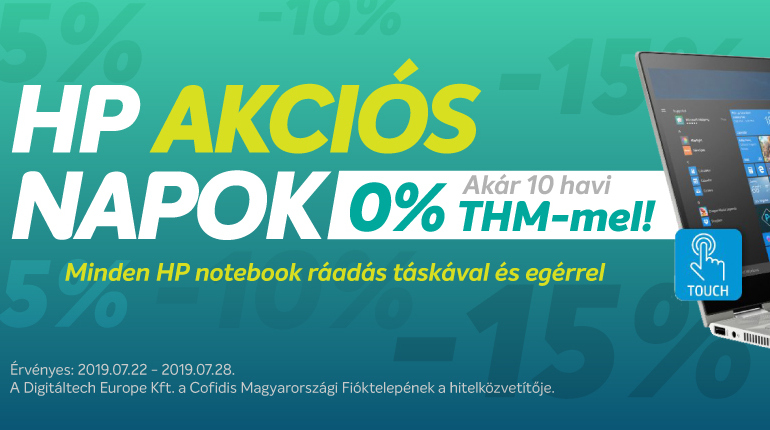 Válogass az akciós HP notebookok között, melyeket 2019. július 28-ig akár 15% kedvezménnyel és 10 havi kamatmentes részletre* is elvihetsz!