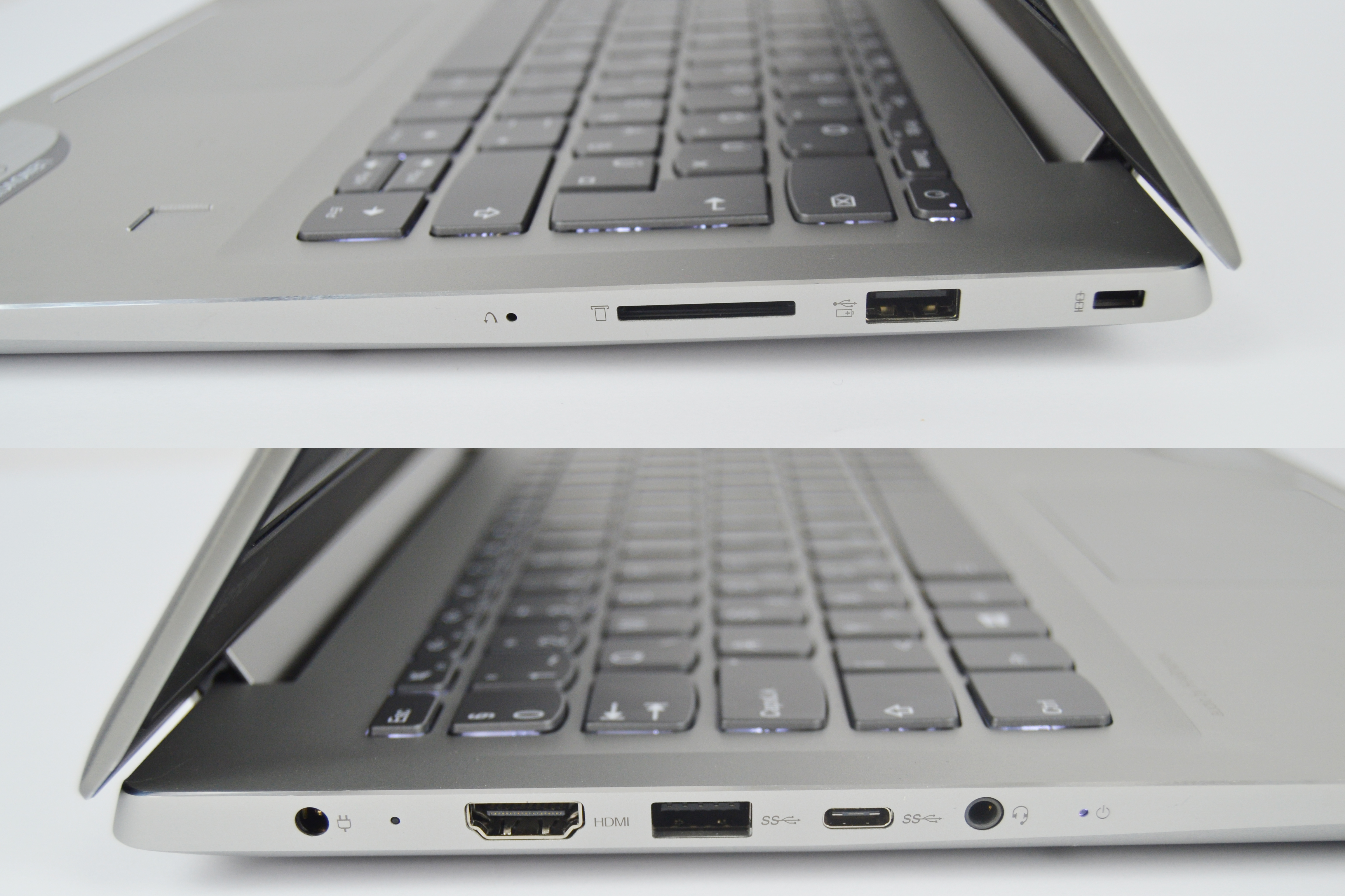 Amennyiben betartod egy adott közösség divatszabályait, akkor nem fogsz kitűnni a tömegből. Egy office notebook általában fekete, vagy fémes fedéssel rendelkezik, messze elkerülve az élénk színű kiegészítőket, vagy a túlburjánzó formákat. Ez tökéletesen igaz az 520S-re is, ami a visszafogottsága ellenére nem lesz karótnyelten unalmas. A borítás elegáns fémes hatása, valamint a gusztusosan krómos Lenovo felület rendkívül jól mutat, ahogy maga az alsó panel is hozza a stílusosságot. A grafit-szerű, valamint a fémes szürke egyensúlya a billentyűzet és a ház megjelenésénél nagyon ügyes, így nincs az az „egy kaptafás” érzés, ami a fém-fekete kombónál már megszokott. A krómos díszcsíkok a smart gesture-ös touchpad, valamint az ujjlenyomat olvasó körül, illetve az alsó panel körül is pont annyira vastag, hogy látszódjon, de pont annyira vékony is, hogy ne egy gagyi sufnituning autó szétkrómozott lökhárítójára asszociáljunk tőle. Annak ellenére, hogy egy vékony és elegáns notebookot kaptunk az 520S személyében, ez nem jelenti azt, hogy az alig 1.7 kilós gép ne lenne masszív. A részben fémházas notebook háza határozottan erős, a billentyűk közti rések nyomkodásánál nincs deformáció, valamint a kijelző zsanérja feletti nyomásra sem hajolt meg igazán a kijelző, mint az az olcsóbb gépeknél gyakori. Összességében egy elegáns, de rendkívül szívós darab lett, a 335.6 x 235 x 19.3 mm-es méretekkel rendelkező Lenovo 520S.