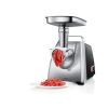 Erős motor nagy, 2200 W-os pillanatnyi csúcsteljesítménnyel: egyenletesen feldolgozott hús a lehető legrövidebb idő alatt. • Nagy mennyiségek: kiváló teljesítmény nagy mennyiségű étel rövid idő alatt történő feldolgozására. • "Hátramenet" funkció: megbízható segítség az elakadt élelmiszerek kiszabadításához • Szeletelő- és reszelőfeltét: kényelmes reszelés, darabolás vagy aprítás. • Kolbásztöltő: a friss házikolbász elkészítésének könnyű módja.• Garancia: 24 hónap