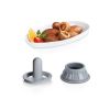 Philco konyhai robotgép • Teljesítmény: 1200W • Bolygóműves rendszer az összetevők tökéletes keveréséhez • Teljes fémszerkezet a fogaskerekekkel együtt (robusztus felépítés) • Bolygóműves rendszer az összetevők tökéletes keveréséhez • Rozsdamentes acél tál fogantyúval, 5,0 l térfogattal • 6 sebesség + turbó vezérlés • Fém dagasztókar, habverő és keverő • Műanyag fedél, adagoló nyílással az alapanyagok hozzáadásához • Csúszásgátló talp