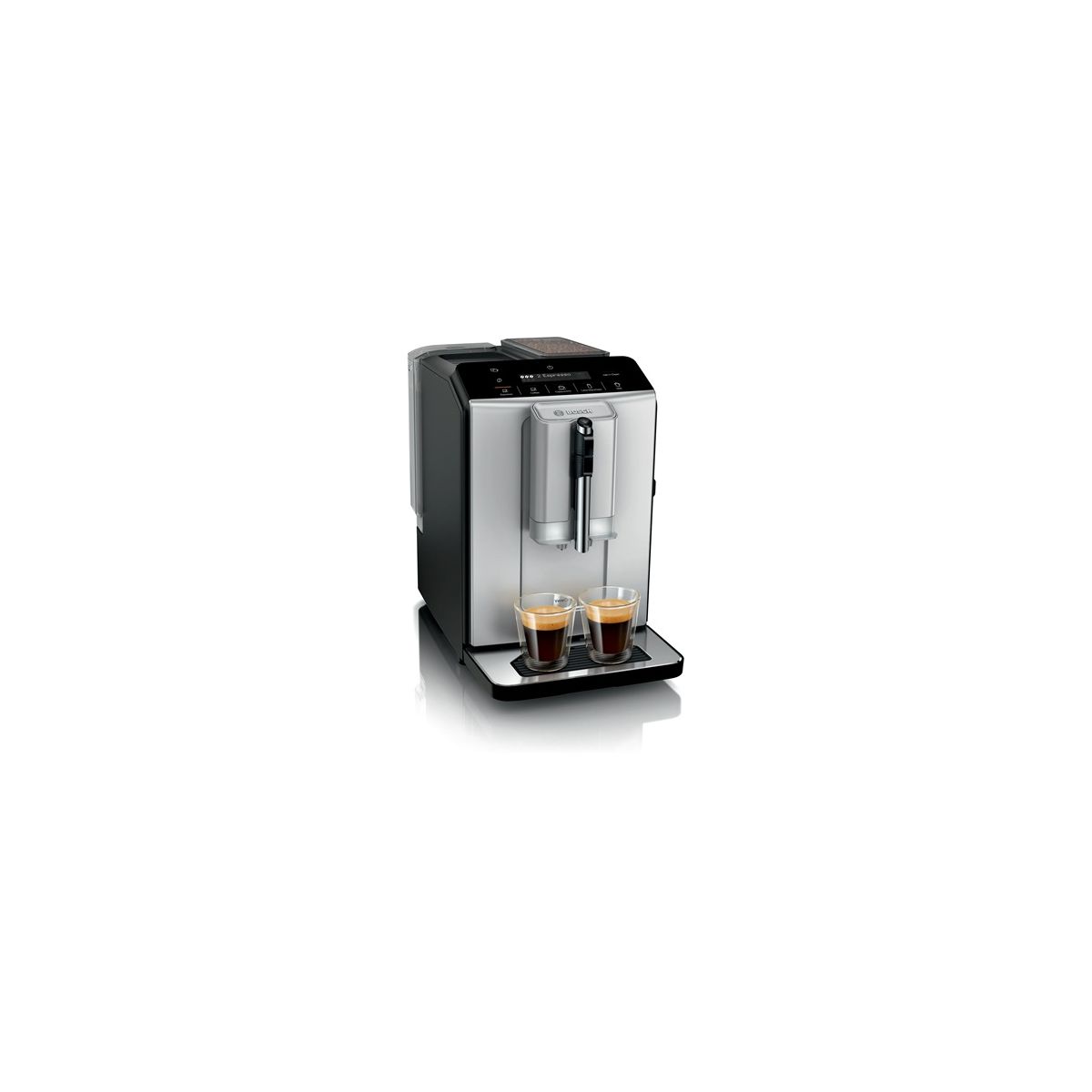 Bosch automata kávéfőző • Termékszín: Selyemezüst • Tejrendszer: Tej fúvóka a tejhabosításhoz • Készülék színe: Selyemezüst • Vízpumpa nyomás: 15,0 bar • Másodlagos szín: Fekete • Italfajta mennyisége: 5 • Italok kiválasztása: Cappuccino, Coffee, Hot milk, Latte Macchiato • Brita Intenza vízszűrővel kompatibilis: Opcionális • Kijező fajtája: LCD kijelző • Magasságban állítható kávékifolyó • Magasságban állítható kávékifolyó: 8,5 - 13 cm • OneTouch DoubleCup • Őrlési fokozat beállítások: Többszintű • Őrlő anyaga: Kerámia • A készülék méretei: 378 x 247 x 420 mm • Nettó súly: 7,0 kg • Víztartály űrtartalma: 1,4 l • Capacity of fresh bean container: 250 g • Csatlakozókábel hossza: 100,0 cm• Garancia: 24 hónap