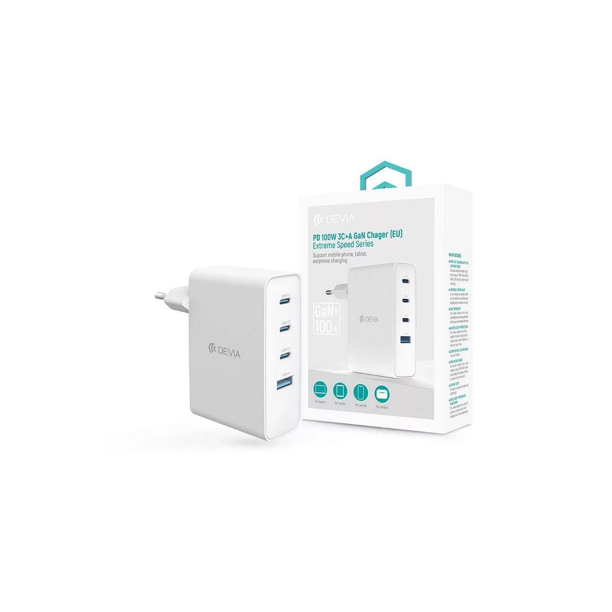 Devia Extreme Speed Series 100W GaN PD hálózati gyorstöltő adapter USB+3xType-C (ST121430) fehér