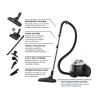 Porzsák nélküli porszívó • Szín: Fehér, Fekete • A készülék méretei: 267 x 324 x 474 mm • Névleges teljesítmény: 550 W • Szűrő: HEPA hygienic filter • Dugós csatlakozó típusa: EU-csatlakozó, földelés nélkül • Teljesítménybeállítás módja: Elektronikus forgógombos szabályozás • Kibocsátási szűrőrendszer: Mosható • Készüléktömeg szívási tartozékok nélkül, a készüléktesten kívül: 5,6 kg • Portartály kapacitás: 2,4 l • Zajszint: 72 dB(A) re 1 pW • Csatlakozókábel hossza: 700,0 cm • Működési hatósugár: 10 m • Kábelfeltekerés: Automatikus