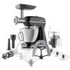 Nagy teljesítményű húsdaráló • 2200 W-os motorteljesítmény • Hosszan tartó, megbízható működés • Csendes üzemmód • Kétélű vágókés • Rozsdamentes acéltárcsák • Fordított funkció • Aprítótartozékok vágóhenger-készlettel • Kolbásztöltő • Paradicsom facsaró • Tengelykapcsoló a motor károsodásának megelőzése érdekében • Fém darálóház • Fogantyú a könnyű szállítás érdekében