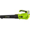 Akkus lombfúvó • Üresjárati fordulatszám: 12000 min^-1 • Max. légáteresztés: 105.6 m³/h • Kimenő légáram: 210 km/h
