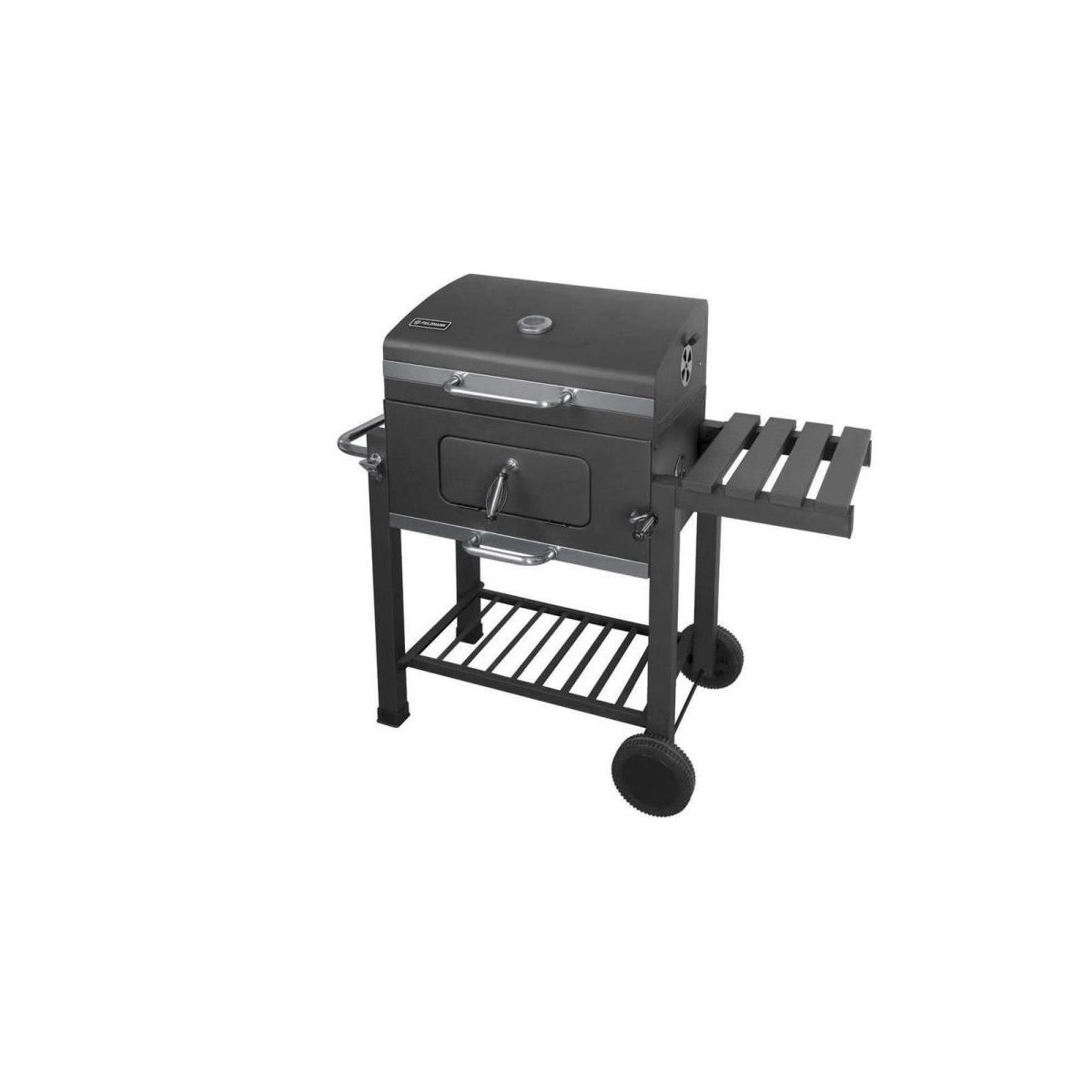 Fieldmann FZG1008 faszenes kerti grillsütő • Tűztér méret: 61 x 45,5 cm • Sütőrács mérete: 27,8 x 41,5 cm • Melegentartó rács mérete: 53,5 x 24 cm • Sütési magasság: 78 cm • Krómozott grillrácsok • Beépített hőmérő• Garancia: 24 hónap
