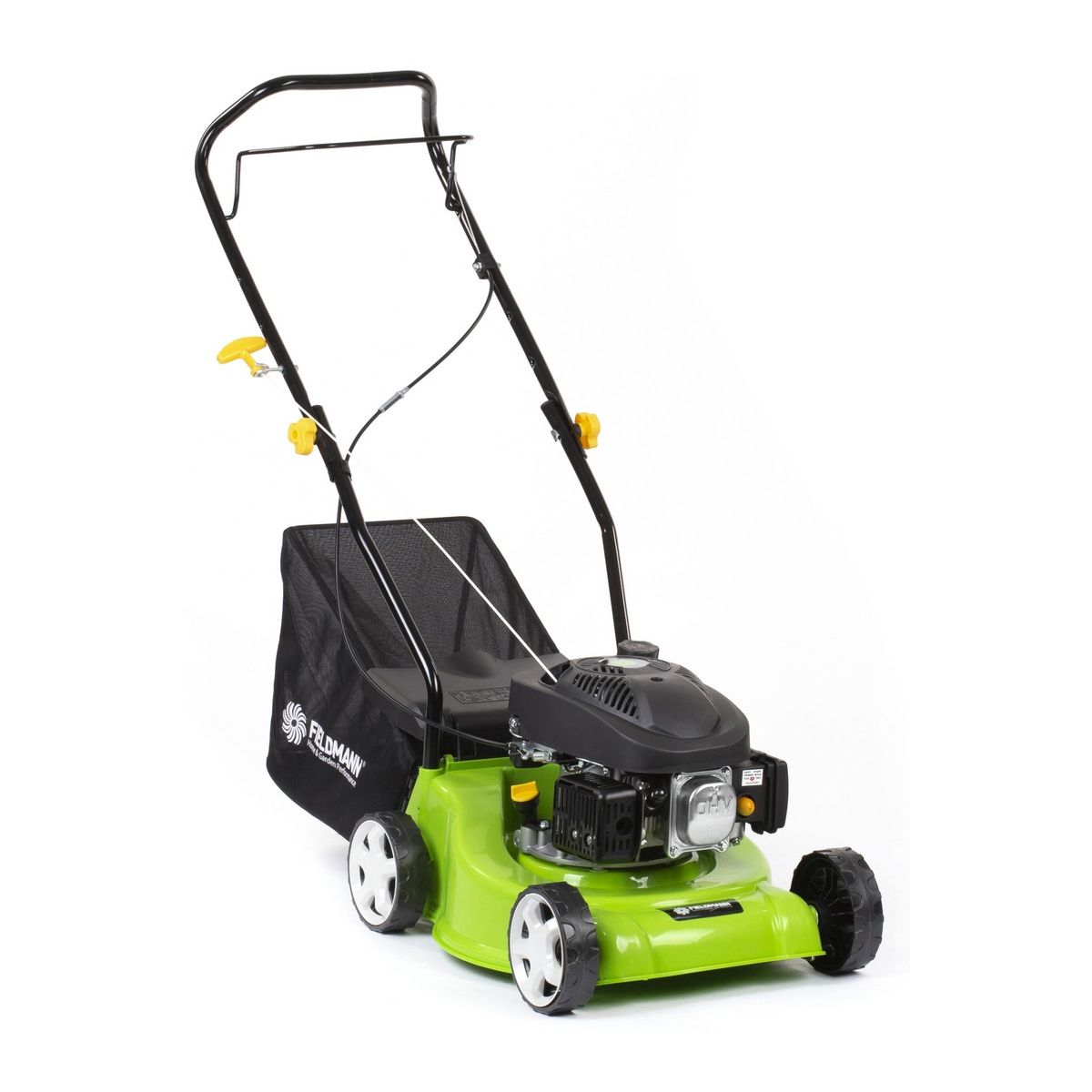 Fieldmann FZR 4006-80BH benzines fűnyíró • Motor: OHV 4-ütemű, 79,0 cm3 • Teljesítmény: 1,6 kW / 2,18 LE • Vágási szélesség: 390 mm • Vágási magasság: 25 - 75 mm, 3 pozíció • Fűgyűjtő kosár kapacitás: 40 liter