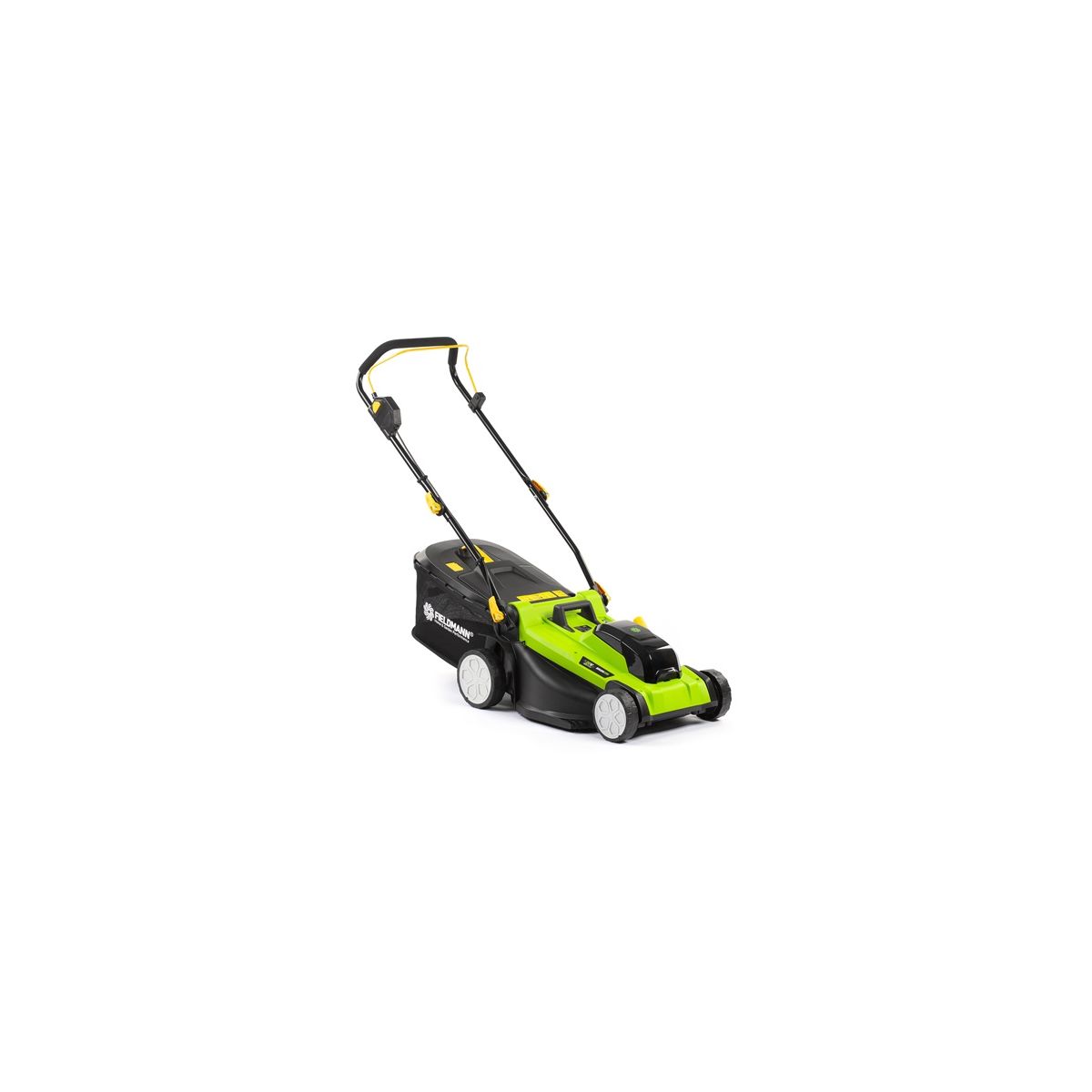 Fieldmann FZR 70385-0 akkumulátoros fűnyíró • 2x 20 V 2000 mAh Li-ion akkumulátor • 380 mm munkaszélesség • 5 különböző vágási magasság (25-75 mm) • 42 literes gyűjtőkosár beépített telítettség jelzővel • Összecsukható fogantyú a könnyű tárolás érdekében