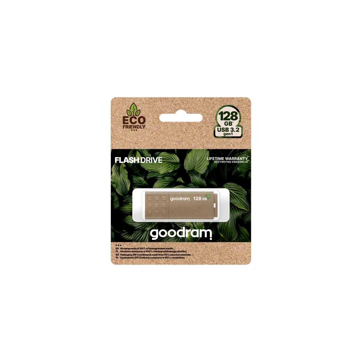 GOODRAM Pendrive 128GB, UME3 USB 3.0, ECO Friendly (100%-ban lebombó ház)