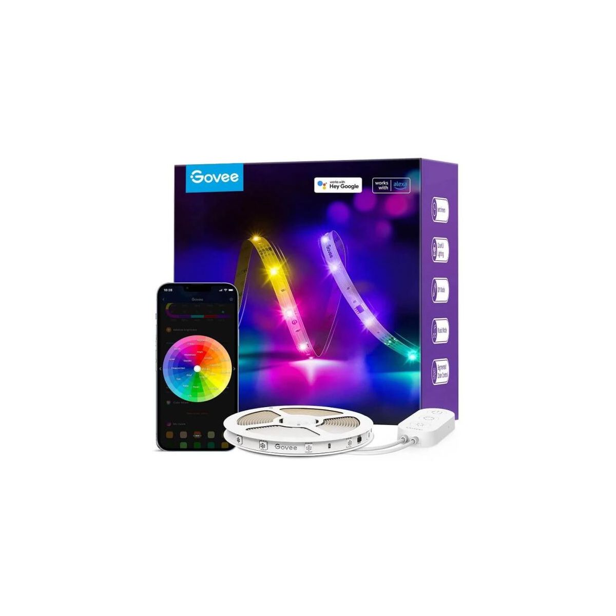 Hossza: 5 m • Vezérlés: App, Vezérlődoboz, Hangvezérlés • Csatlakozás: 2,4 GHz Wi-Fi + Bluetooth • App csatlakozás: Alexa, Google Asszisztens, Matter