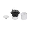 fehér festett acéllemez • nyomógombos vezérlés (mechanikus) • három sebességfokozat • 1x1,5W LED • tartozék 1 db 3 rétegű alumíniumhálós mosható zsírszűrő (KPE 5019/A) • opcionális: pamutszűrő (KPE 5019/COT) • külső vagy recirkulációs szellőztetés • maximális légszállítás (m3/h): 190 • maximális motor teljesítmény (W): 38 • levegő kivezető nyílás (mm): 120 • zajszint (dB): 61