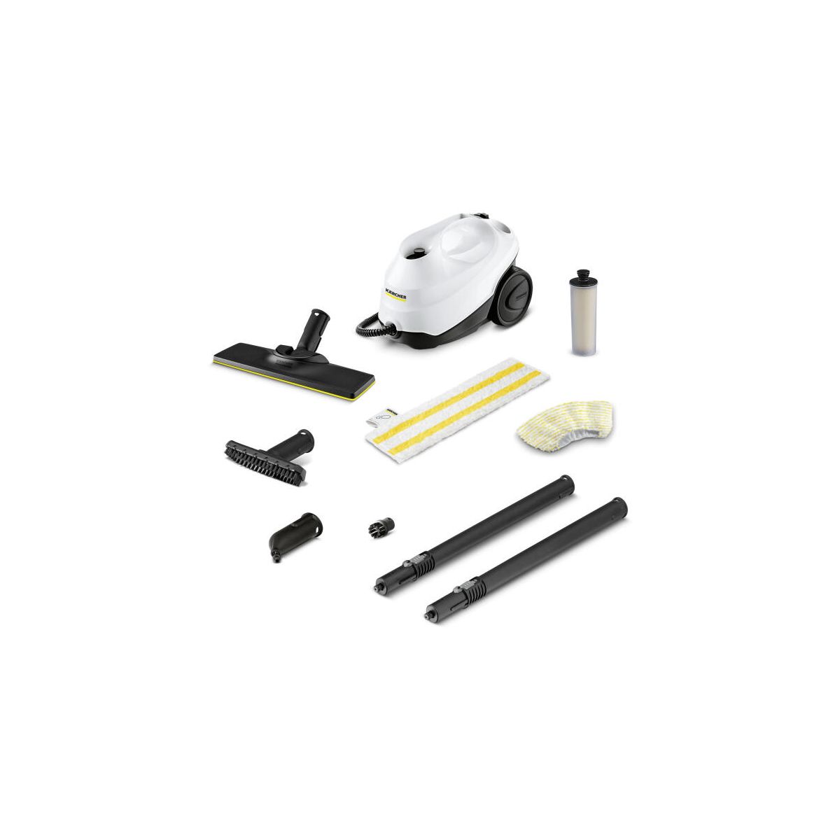 Karcher SC 2 Easyfix EU gőztisztító • Tartozéktárolás és parkolóállás • EasyFix padlótisztító készlet • Biztonsági gyerekzár • Multifunkciós tartozékok • Gőztömlő pisztollyal (2,2 m)