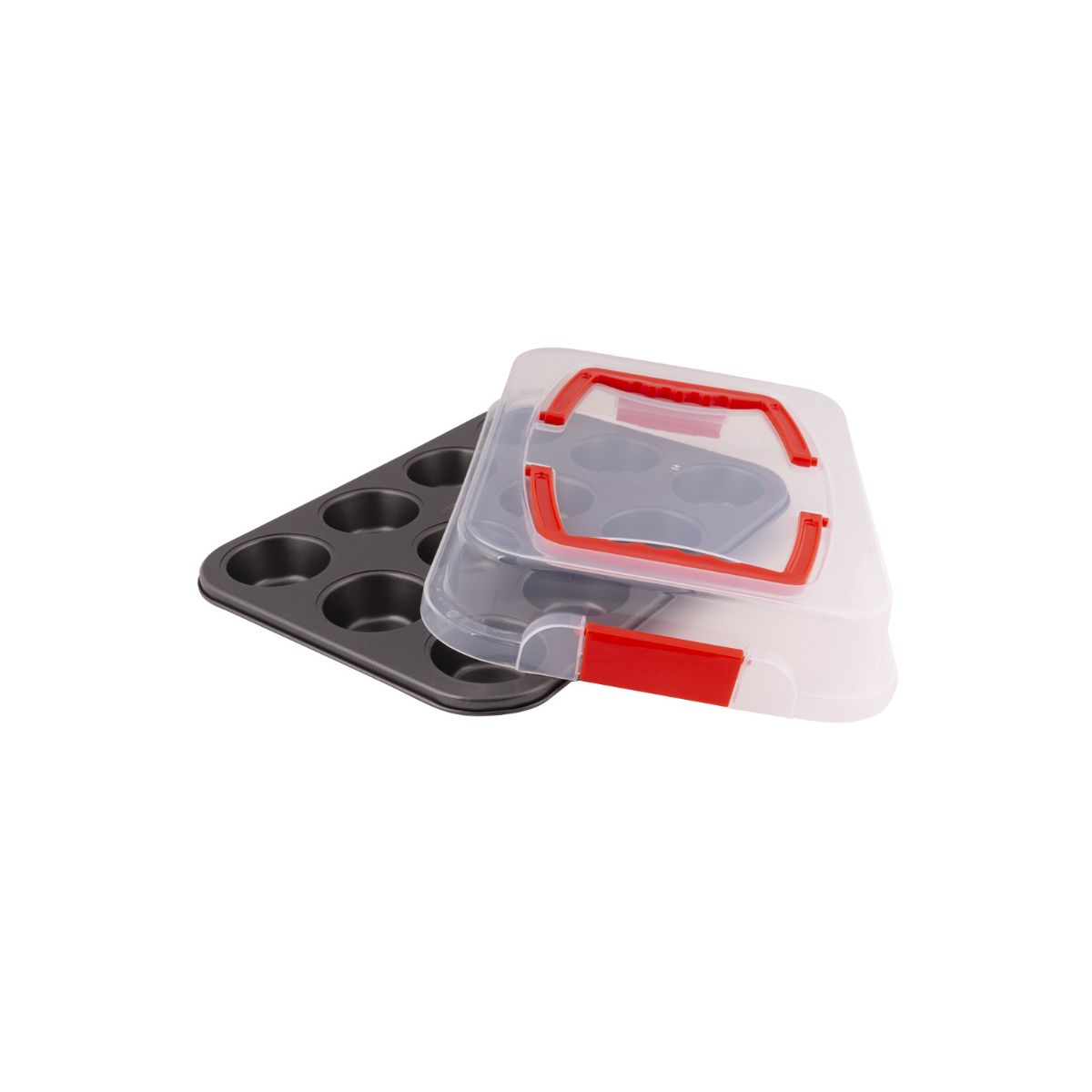 Lamart Dolce LT3103 12db muffin sütőforma fedéllel (42004674) fekete / átlátszó / piros