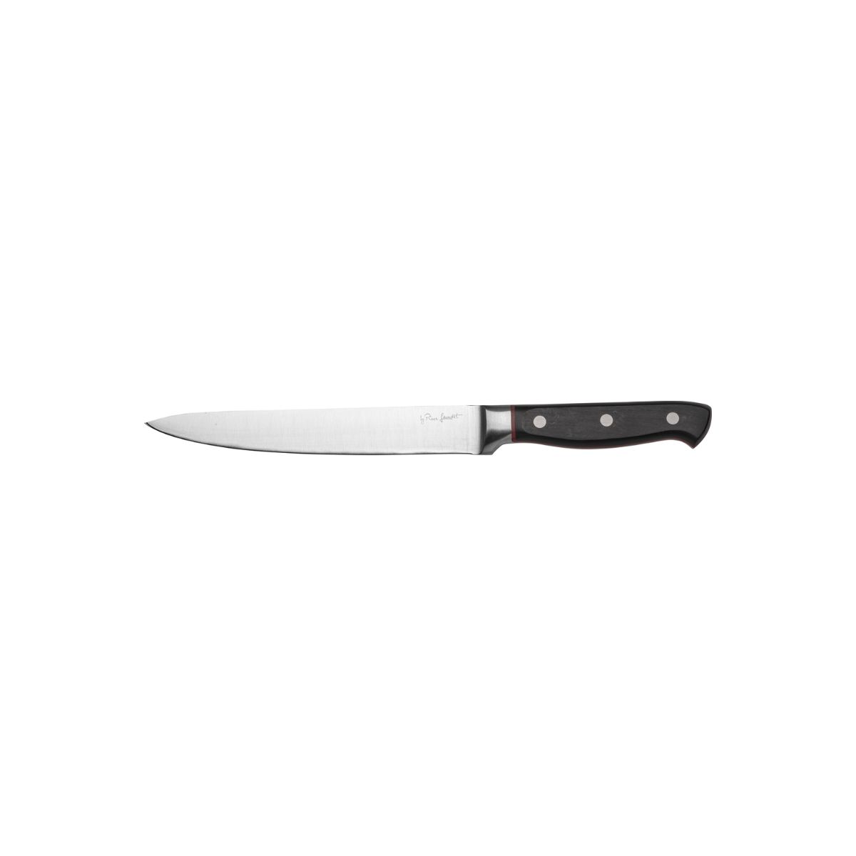 Penge hosszúság: 9,0 cm • Kés hosszúság: 20,0 cm • Anyag: rozsdamentes acél / TPR • Szín: acél / fekete • Ergonomikus fogantyú a maximális hatásért és biztonságos használatért • Nem befolyásolja a szeletelt élelmiszer illatát és ízét • Használat után mossa meg és szárítsa meg, tartsa gyermekektől távol • A TPR rendkívül ellenálló, tartós műanyag és gumi „ötvözet" • Vigyázat: Helytelen kezelés esetén minden kés veszélyes
