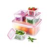Lamart LT6001 5 részes ételtároló dobozkészlet • Maximális űrtartalom: 0,43 / 1,1 / 5,3 liter • Méret: 13,5 x 10,0 x 6,5 cm / 18,1 x 12,5 x 8,6 cm / 29,8 x 22,8 x 8,5 cm • Anyag: műanyag • Szín: átlátszó • Készlet tartalma: 1x 5,3 literes / 2x 1,1 literes / 2x 0,43 literes edény • Minőségi szilikon fedéltömítés • Klipszes záró mechanizmus • Légmentes és vízálló kialakítás • Modern formatervezés • Mikrohullámú sütőben és fagyasztóban is használható • -20°C – +110°C hőmérsékleti intervallum • Egyszerűen tisztítható • Mosogatógépben mosható• Garancia: 36 hónap