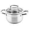 Lamart LT1273 edény fedővel 18x10cm • Elsőosztályú nemesacélból készült • Erősített alj a nagyobb biztonság érdekében • Ellenálló üveg széllel és pára-nyílással • Minden sütőhöz megfelelő (gáz, villany, üvegkerámia, indukciós) • Mosogatógépben mosható