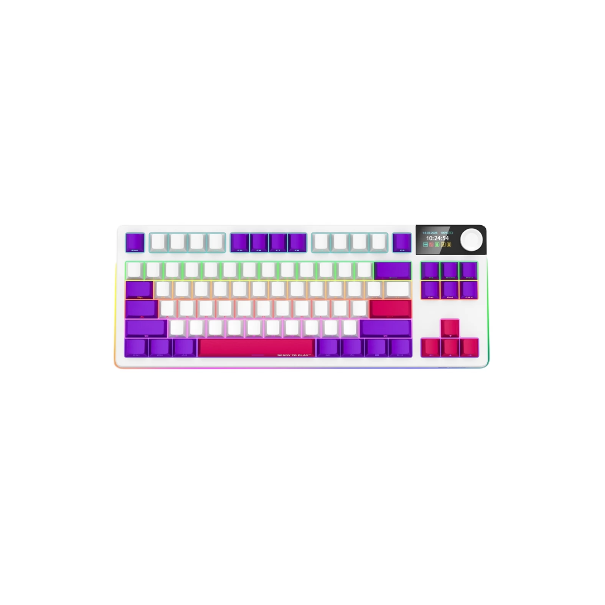85 billentyű • vezeték nélküli • BT 5.0 • 2,4 GHz • hot-swappable • 55 gf • 2 mm aktuáció • 3,4 mm úttáv • RGB háttérvilágítás • TFT kijelző • 7 200 mAh akkumulátor • 153 óra üzemidő• Garancia: 24 hónap