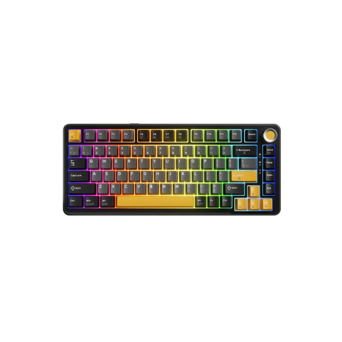 MARVO Titan 75 vezeték nélküli gaming billentyűzet • Tri-Mode Connectivity: vezetékes 2.4G és Bluetooth kapcsolatok • Hot-Swappable Mechanical Switches: MARVO Banana Crystal kapcsolók teljes hot-swap támogatással • Premium Gasket Build: tartós ABS ház és fém gomb • South-Facing RGB Lighting: testreszabható RGB világítási hatások • Massive 4000mAh Battery: hosszú üzemidő vezeték nélküli módban• Garancia: 24 hónap