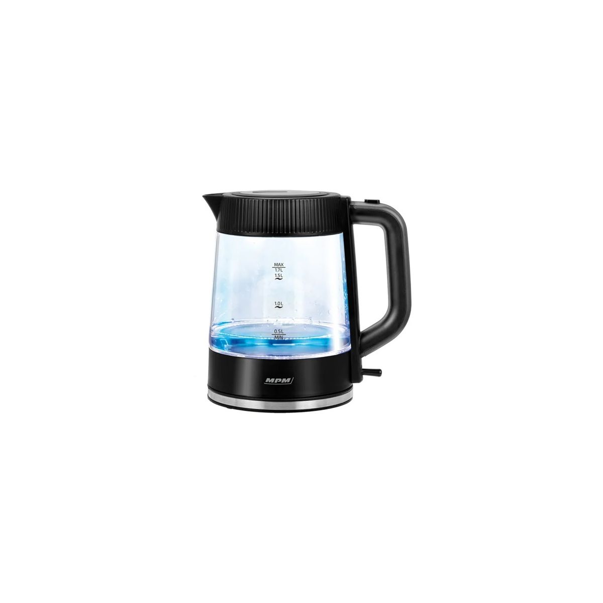 MPM MCZ-117 vízforraló • Megvilágított belső • Üveg és műanyag ház • Automata fedél • Stabil elforgatható alap • Fedett fűtőtest • Cserélhető szűrő• Garancia: 12 hónap