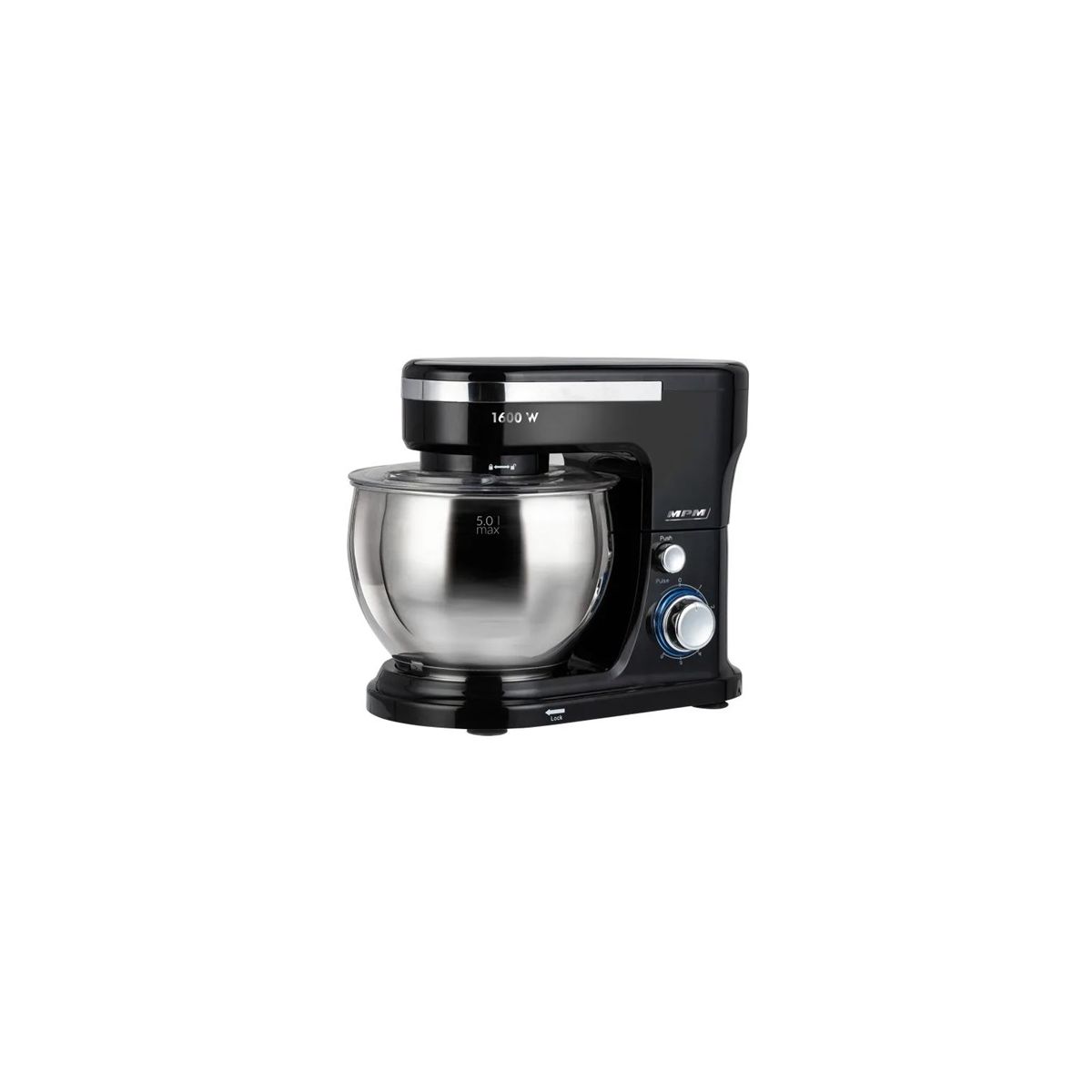 MPM MRK-21 konyhai robotgép • Teljesítmény: 1600 W • Funkciók: Élesztős tészta dagasztása, masszák felverése, mixelés • Sebességfokozatok: Fokozatmentes • Termékszín: Fekete • 5,0 literes rozsdamentes acél tál • 4,0 literes műanyag tál • Dagasztó horog • Habverő • Keverőszár • Keverő tál • 4.15 kg súly• Garancia: 24 hónap