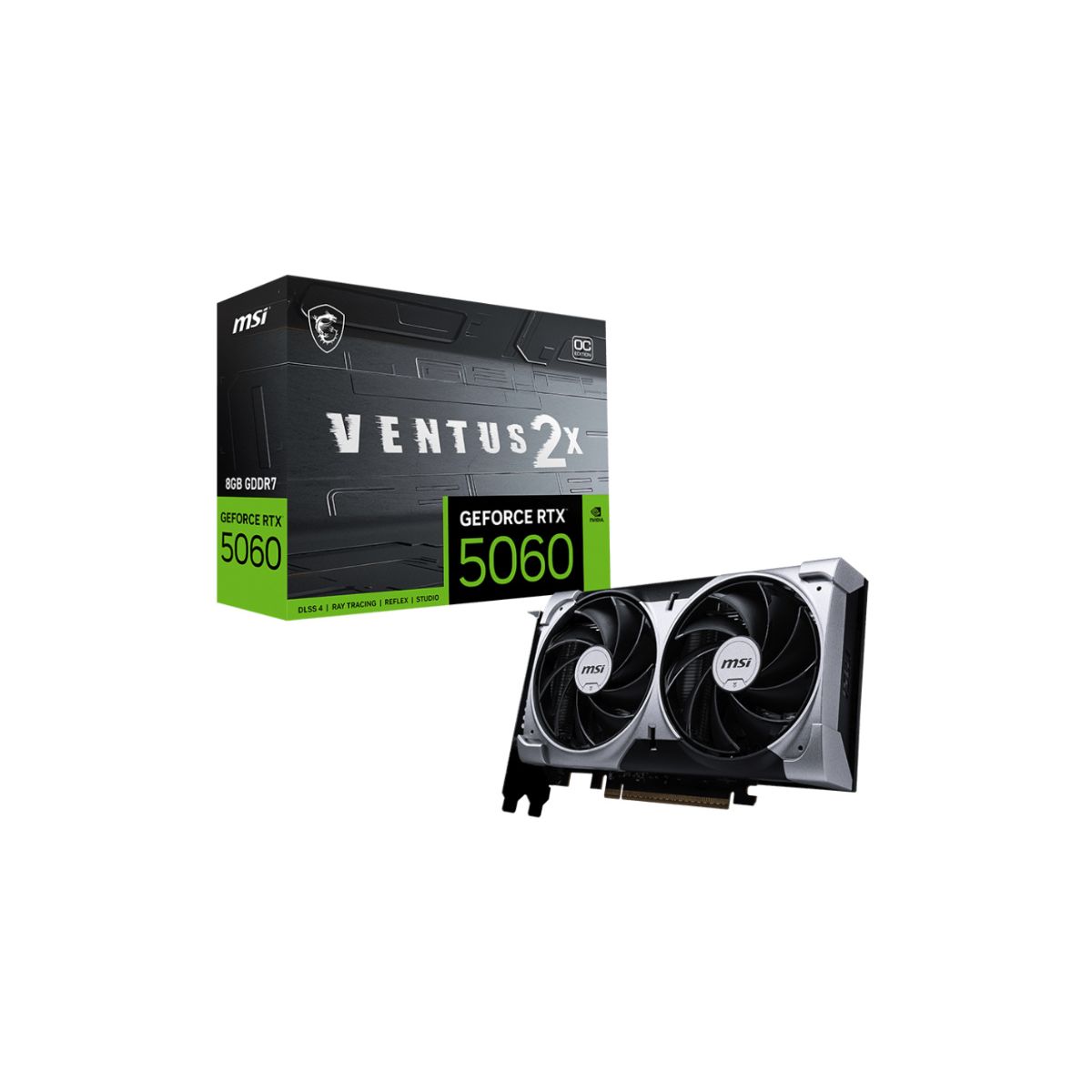 MSI GeForce RTX 5060 Ventus 2X OC videokártya • NVIDIA GeForce RTX 5060 GPU • 8GB GDDR7 memória • 3840 CUDA mag • 28 Gbps memória sebesség • 145W energiafogyasztás• Garancia: 24 hónap