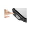 Modern szenzorgombos kezelés • Könnyen tisztítható üvegfelület • Teherbírás: 5 kg • Beosztás: 1 g • Átállítás g, ml, oz, fl.oz, lb:oz között • Tára hozzámérési funkció • Kikapcsoló automatika, túlterhelés kijelzése • Méret: 20 x 14,5 x 1,7 cm • Kijelző mérete: 4,6 x 2,4 cm • Számjegyek mérete: 20 mm • 1 x 3 V CR2032 elemmel