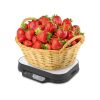 Sencor SKS 30WH konyhai mérleg • Érintésvezérelt működtetés • Nagy LCD kijelző, háttérvilágítással (5,3 × 2,3 cm) • Edénysúly levonás, nullázás (tára funkció) • Homogén műanyag felület, könnyen tisztítható és higiénikus • 4 szenzor a pontosabb súlyméréshez • Hozzámérés funkció • Mérhető súly 5 kg-ig (1 g-os pontossággal) • Automatikus kikapcsolás 60 másodperc után • Mértékegység választás (g/ml/lb/fl:oz) • Gyenge elem és méréshatár túllépés figyelmeztetés • Tápellátás: 3 db 1,5 V-os ceruzaelem (AAA típus), a csomag tartalmát képezi • Méret: 180 × 220 × 26 mm • Tömeg: 0,33 kg