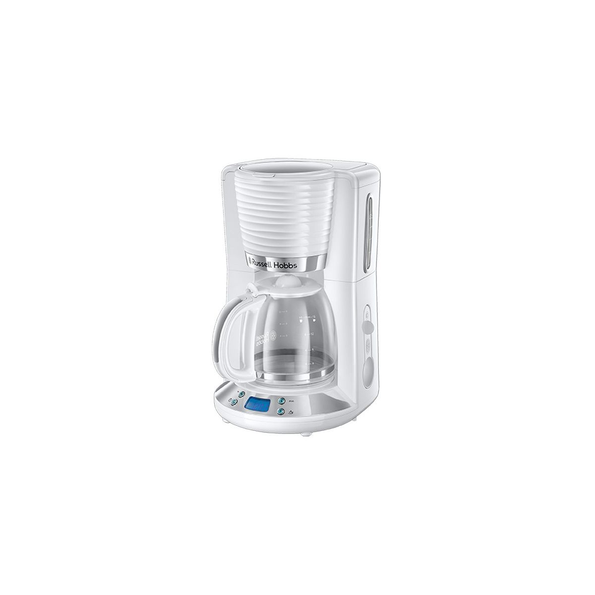 RUSSELL HOBBS Inspire 24390-56/RH kávéfőző fehér kompakt háztartási • kapacitás 10 nagy csésze / 15 kis csésze • teljesítmény 1100 W • digitális kijelző • programozható 24 órás • Whirl Tech áztató technológia• Garancia: 36 hónap