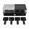 Eva 022758 raclette grill sütő • 500W teljesítmény • Kőlap • 4 db raclette lap • A raclette lap fogója hőszigetelt • Muködést jelző fény • Méretek: 205 x 220 x 200 mm