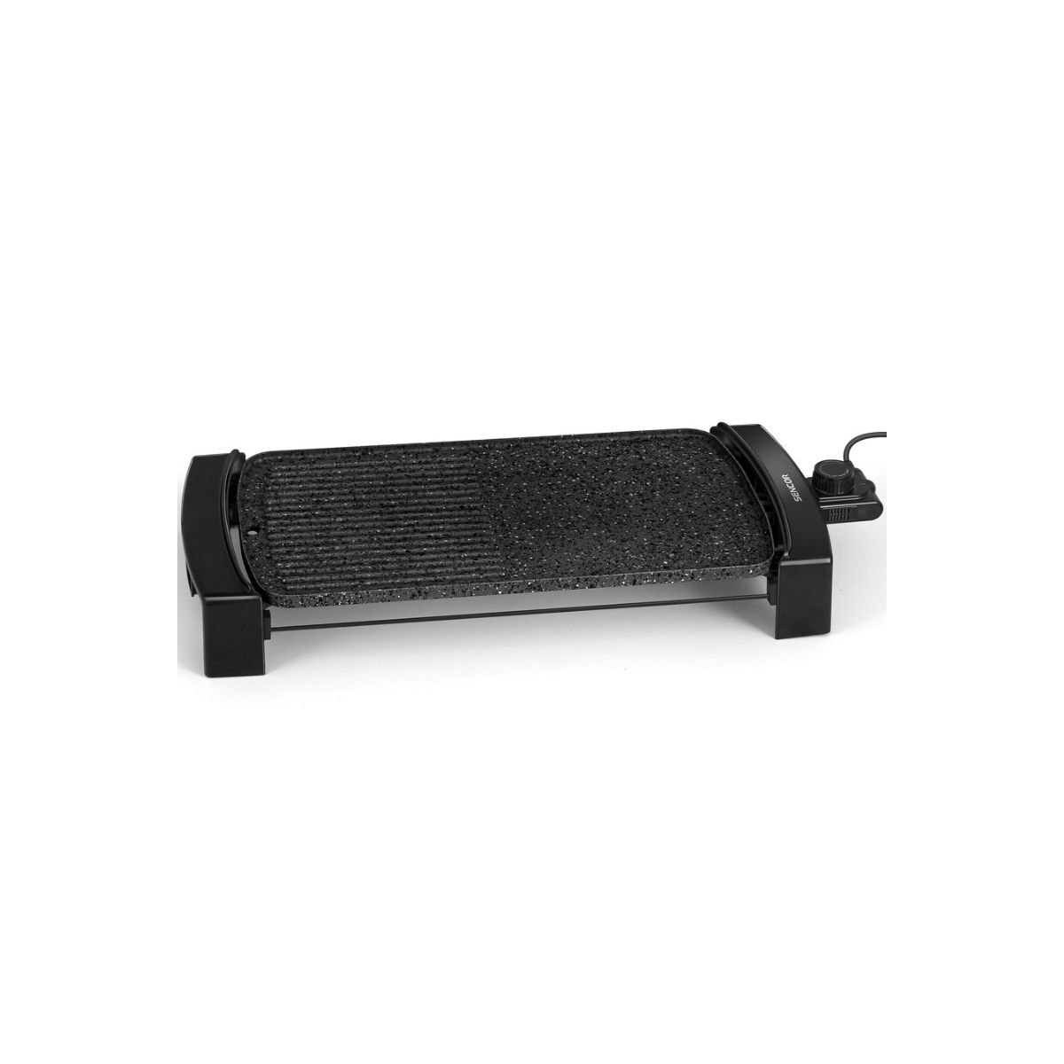 Kompakt kialakítású, hordozható, asztali grillsütő • 2 az 1-ben, sima és bordás sütőlap • Tapadásmentes grillező felület • Kivehető olaj lecsöpögtető tál (350 ml kapacitás) • Tekerőgombos, szünetmentesen szabályozható termosztát • Automatikus hőfok-szabályzás fénykijelzéssel (100 - 220 °C) • Csúszásmentes talpak • Könnyű tárolás (lecsatlakoztatható termosztátos tápkábel) • Túlmelegedés elleni védelem (hő biztosíték) • Feszültség és frekvencia: 220-240 V, 50 Hz • Teljesítmény: 2300 W • Tápkábel hossz: 1,0 m • Nyílt grillező rendszer• Garancia: 24 hónap
