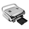 Intelligens funkció a grillezéshez, az LCD kijelző segítségével • Automatikus szenzorok biztosítják a mindig tökéletes sütést • CoolTouch (hideg érintésű) felület • Két sütőlap típus (3 darab): - alsó sima sütőlap - alsó és felső bordás sütőlap • 3 üzemeltetési helyzet (lezárt / 90°-ban kinyitott / 180°-ra szétnyitott) • Tapadásmentes sütőlapok • A grillező lap méretei (szélesség × mélység): 30 × 25 cm • Automatikus hőmérséklet szabályozás • Kihúzható cseppgyűjtő tálca • Egyszerűen, papír törlőkendővel tisztítható • A sütőlapok mosogatógépben is elmosogathatók • Külön működés- és fűtéskijelző • Hőszigetelt fogantyú, szendvicsek összesajtolásához használható • Zárt állapotban biztosítja a készülék kényelmes mozgatását • Függőleges helyzetben tárolható • Csúszásgátló lábak • Teljesítmény: 2100 W • Kettős grillező rendszer• Garancia: 24 hónap
