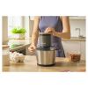 - Tartozékok: Rozsdamentes aprító penge, megfordítható tárcsa, szűkítő, tartály, 2 fedél