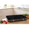 Indukciós elvű működés • 12 - 26 cm átmérőjű edényekhez alkalmas • 10 előre beállított főzőfokozat 200-2 000 W + 200-1 500 W • 60 és 240 °C közötti hőmérséklet beállítás • Speciális üvegkerámia felület • Beépített, könnyen leolvasható LCD kijelző piros háttérvilágítással • Időzítő a kikapcsolás késleltetéséhez 1–180 perc között • ON/OFF gomb a készenléti üzemmód ki-/bekapcsoláshoz • Automatikus edényfelismerés és automatikus kikapcsolás • Érintés vezérelt működtetés, és forgókapcsolós hőmérséklet és teljesítmény beállítás • Csúszásmentes lábak garantálják a készülék biztonságos használatát • Számos biztonsági funkcióval ellátva • Teljesítmény: 2000 W + 1 500 W• Garancia: 24 hónap