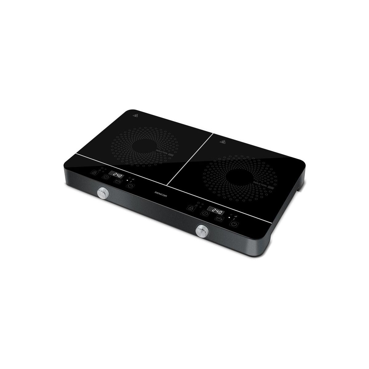 Sencor SCP 5414GY indukciós főzőlap • 3100 W összteljesítmény (1800 W + 1300 W) • 10 különböző hőmérsékleti szint (60–240 °C) • Intuitív érintőgombos vezérlés és forgógombos szabályozás • Kompakt méret és könnyű hordozhatóság • Könnyen tisztítható sima felület